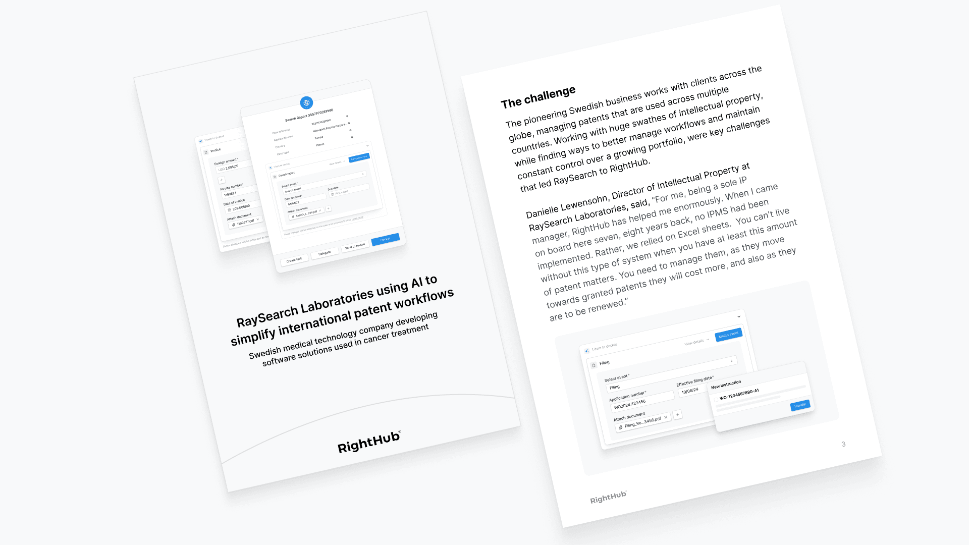 In this case study, discover how RaySearch partnered with RightHub to introduce AI-powered tools that replaced outdated processes, reduced administrative burden, and brought visibility and control to their international IP workflows. Perfect for IP professionals seeking smarter ways to manage global portfolios.